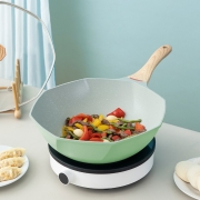 【精选】德铂(Debo) 科巴姆炒锅 DEP-825 30cm 不粘锅 平底网红八角锅 明火电磁炉通用 灰色 含玻璃盖*1、锅身*1