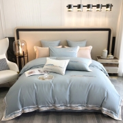 【精选】顾柔 1.2米床床单款 100支双股贡缎长绒棉纯色三件套 被套150*200cm 拼色套件 (计价单位:套) 海蓝色