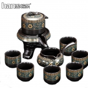 【精选】翰乐茶具半自动时来运转泡茶神器描金高端轻奢HL-SMSH石墨生花9件套