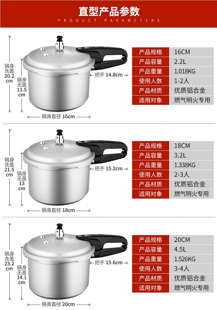 商品名称:【精选】双喜 (GBPLW) 高压锅 压力锅 高压力密封圈防爆锅具 20cm/4.5L/3-4人 明火专用