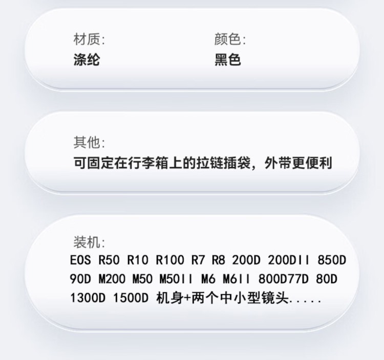 商品名称:【精选】佳能(Canon) 相机包 (计价单位:个) 6d2 6d 5d4 800d防潮微单包 佳能5D4 6d2 850d 90d单肩包