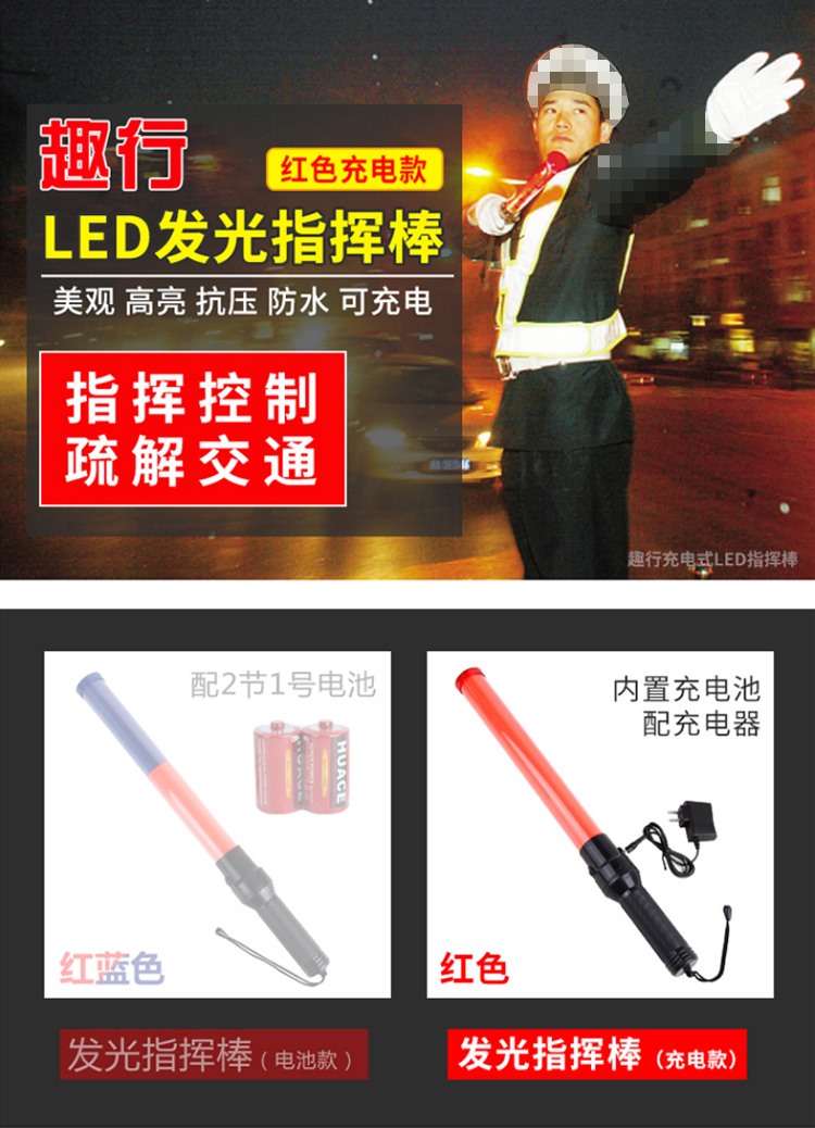 商品名称:【精选】趣行 交通安全指挥棒全红色54cm(充电款配充电器)LED灯消防棒 荧光警示棒 (计价单位:个)
