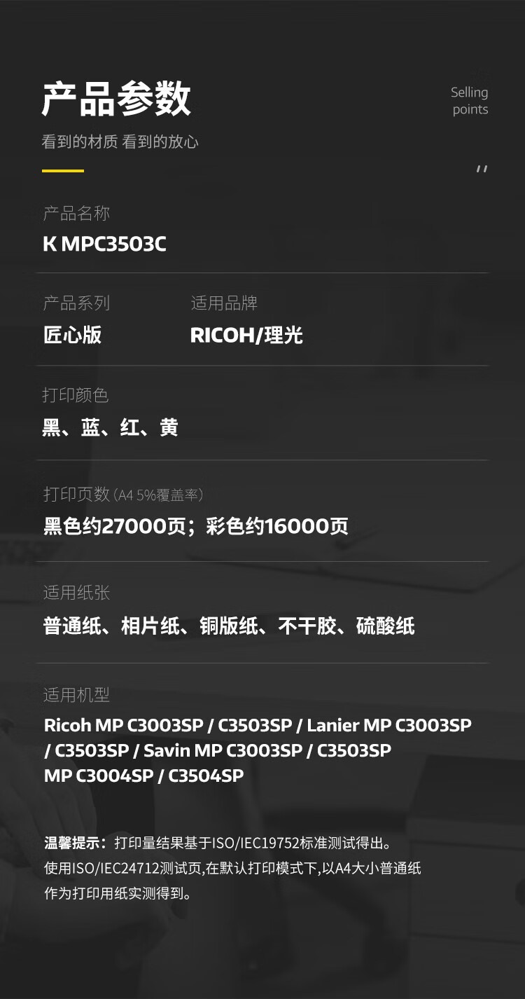 商品名称:【精选】科思特 MP C3503C 粉盒带芯片 适用理光MP C3003SP/C3503SP 青色专业版 (单位:支)