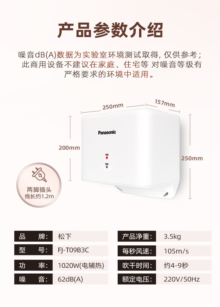 商品名称:【精选】松下FJ-T09B3C 干手器 烘手机 (单位:台)