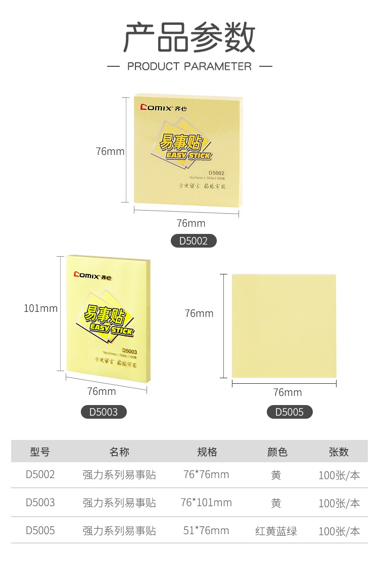 商品名称:【精选】齐心(COMIX) D5003 3X4英寸 12本装 强力系列易事贴 (计价单位:盒) 黄