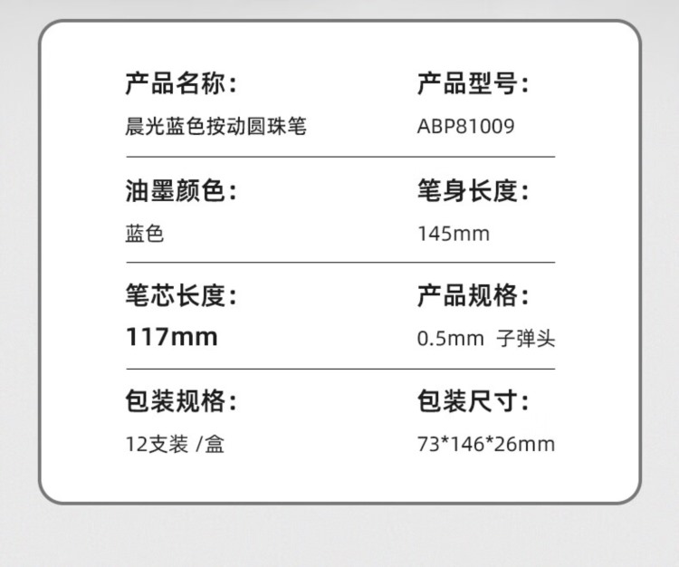 商品名称:【精选】晨光 M&G 圆珠笔 BP-8109 0.5mm (蓝色) 12支/盒
