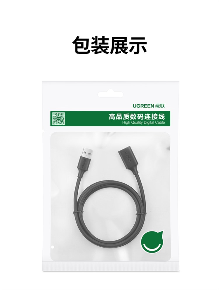 商品名称:【精选】绿联 UGREEN USB延长线 USB2.0公对母 10318 5米 (黑色)