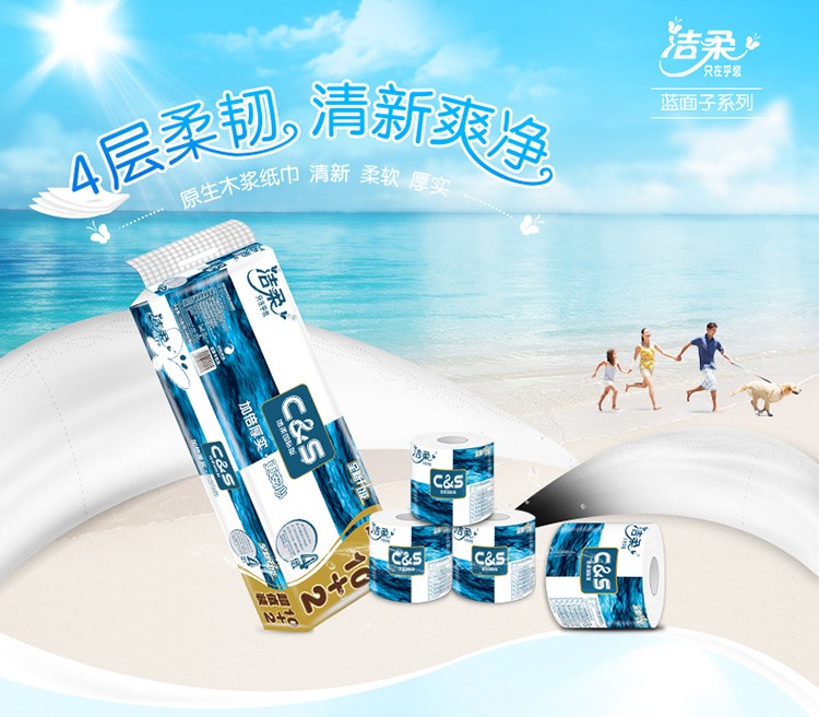 【精选】洁柔 蓝Face 3层*140g/卷*12卷/提 卷纸 (计价单位:提) 柔韧 国际版 加量装