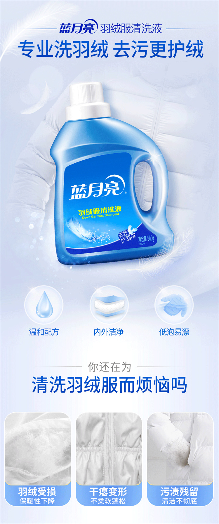 商品名称:【精选】蓝月亮浓缩型羽绒服清洗液500g 清香