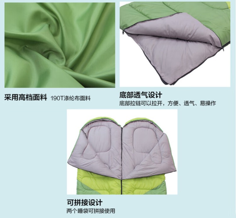 商品名称:【精选】绵族世家 信封式加厚保暖睡袋 MZSJ-X2239 1.1kg 绿色