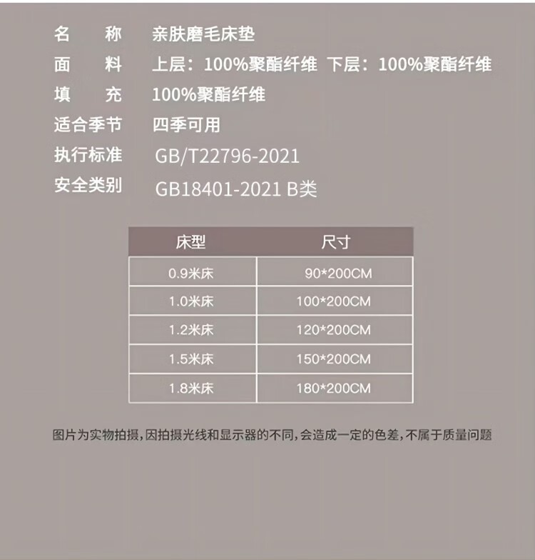 商品名称:【精选】自然巢 磨毛薄床垫 150*200cm (计价单位:张)