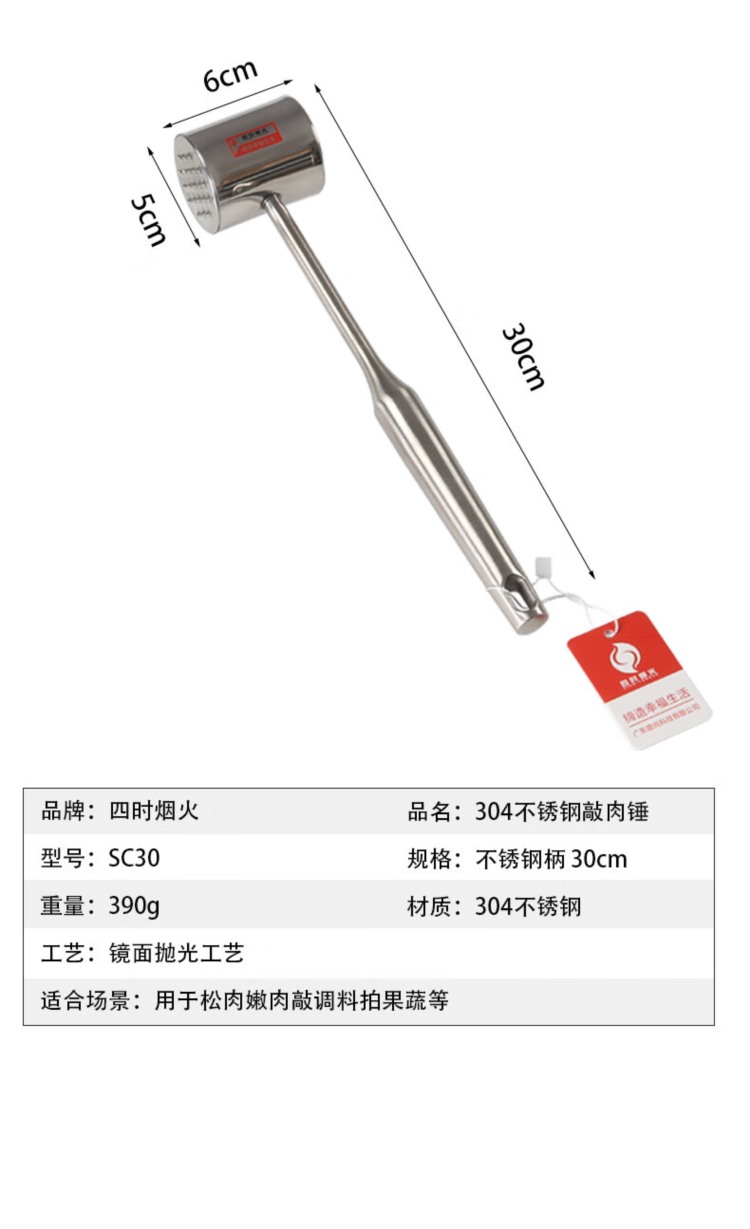 商品名称:【精选】四时烟火 SC28 304不锈钢敲肉锤 不锈钢柄 30cm (计价单位:把) 银色