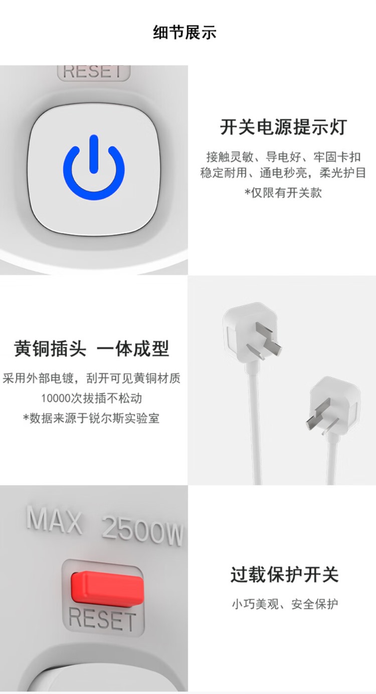 商品名称:【精选】锐尔斯 RH-6880B 延长线插座 八位总控 全长1.8O米 (计价单位:个) 瓷白色