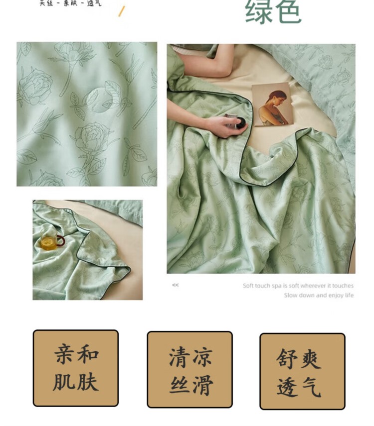 商品名称:【精选】绵族世家 MZSJ-X1768 莱赛尔天丝夏被 200*230cm (计价单位:床) 白、粉、绿色可选