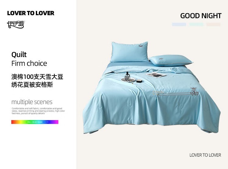 商品名称:【精选】伊伊爱BZ0TDC2301106澳棉100支天雪大豆(抗菌)绣花夏被安格斯150*200cm(单位:条)