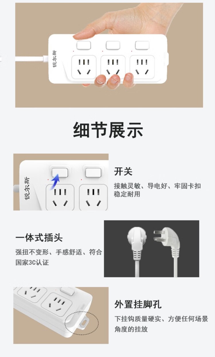 商品名称:【精选】锐尔斯 7400C 延长线插座 四插位 3米长 (计价单位:个)