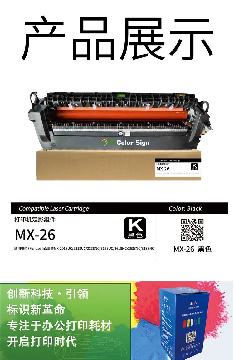 商品名称:【精选】彩标 (Color Sign) 定影组件 MX-26 适用夏普MX-2018UC/2318UC/2338NC/3128UC/3618NC/2638NC/3138NC 约160000页 (黑色)