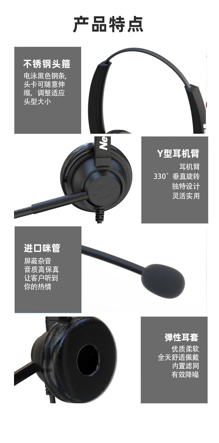 商品名称:【精选】纽曼(Newmine)NM-HW800S 头戴式话务耳机 单耳客服中心耳麦-RJ9水晶头