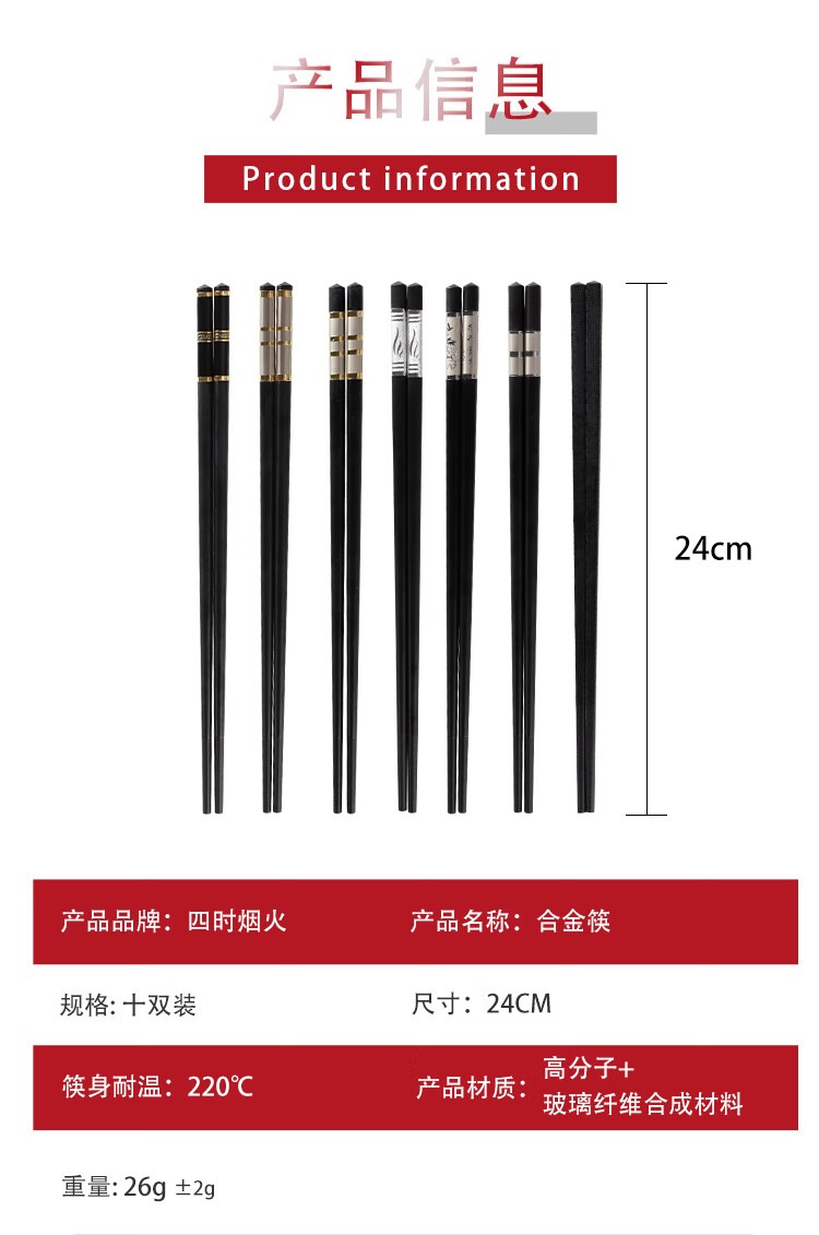 商品名称:【精选】四时烟火 合金筷 SK20 24cm十双装 (银三线银色边)