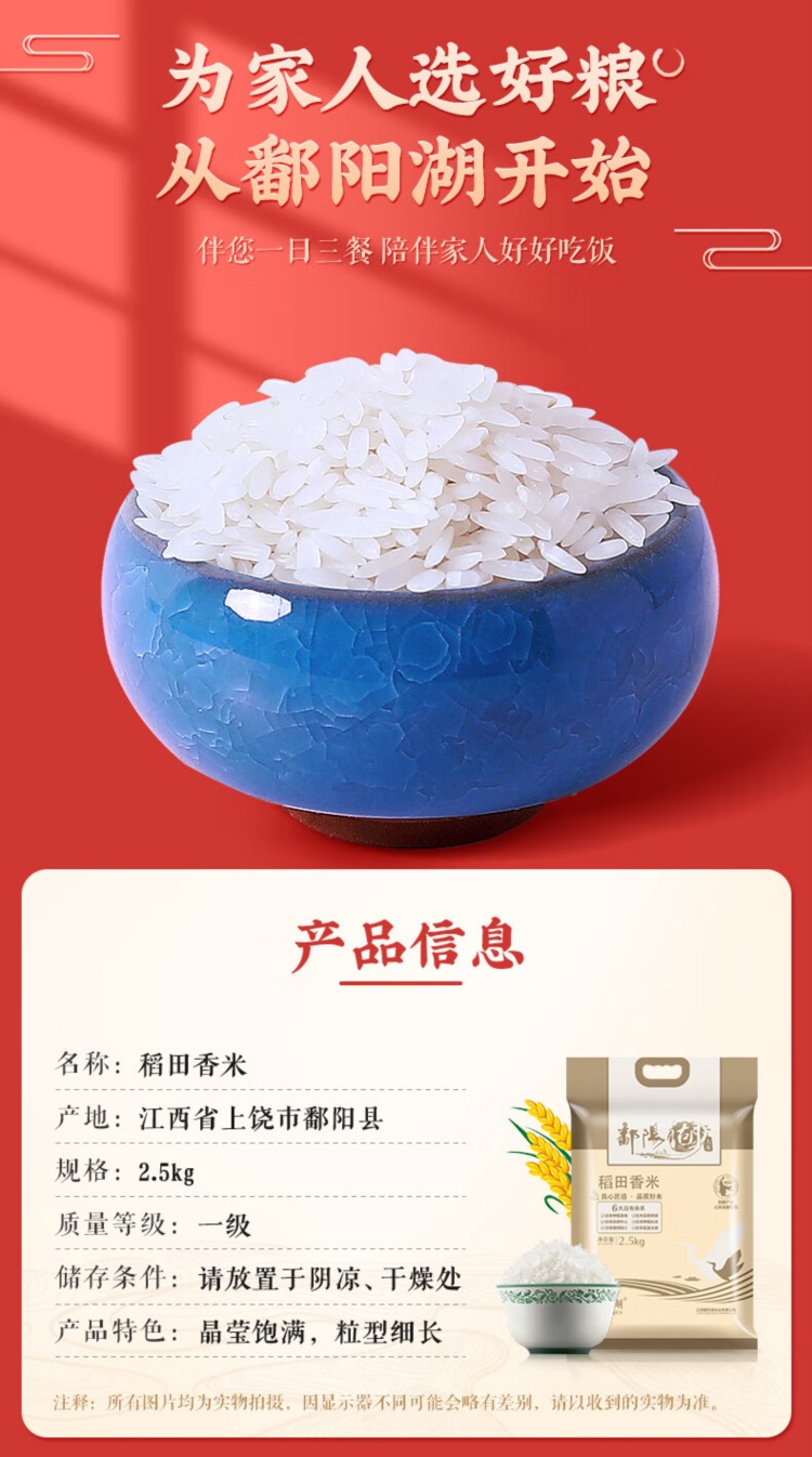 商品名称:【精选】鄱阳湖 稻田香米(江西长粒香米) 2.5kg (计价单位:袋)