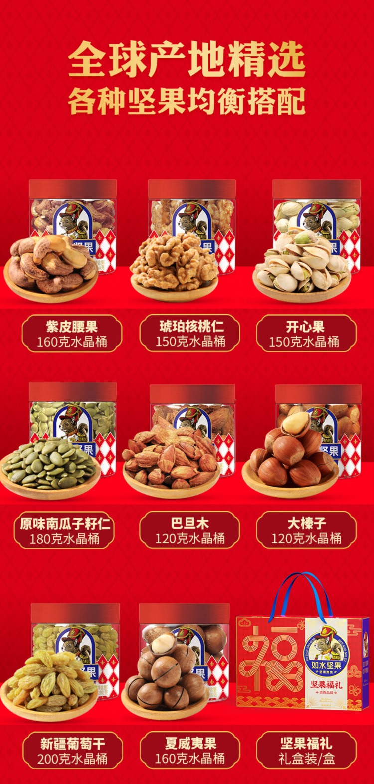 商品名称:【精选】如水 1910g 坚果礼盒全家福 (计价单位:盒)