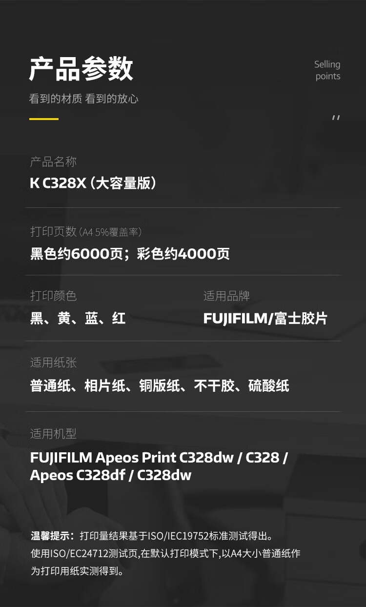 商品名称:【精选】科思特K C328 粉盒 匠心版 适用富士施乐 Apeos Print C328dw/C328/C328 黄色 约2000页(单位:个)