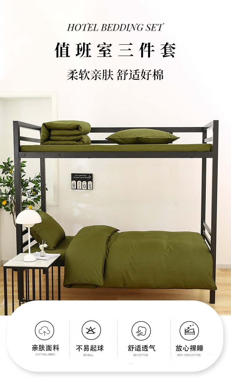 商品名称:【精选】伊伊爱 TJ0JD02201705 值班室三件套 被套150*200cm 床单180*230cm 枕套48*74cm (计价单位:套) 军绿色