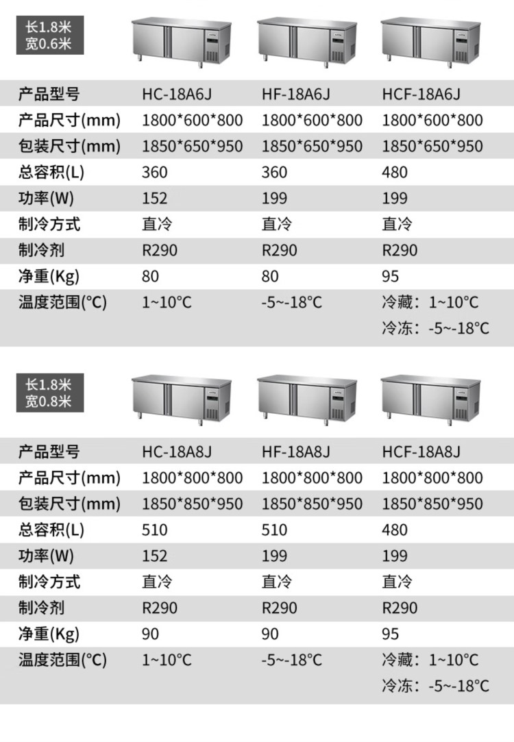 商品名称:【精选】澳柯玛(AUCMA)冷藏工作台冰柜商用冷藏工作台操作台卧式冰箱奶茶设备平冷水吧台厨房冰箱冷柜 1.8米丨双温丨HCF-18A8J