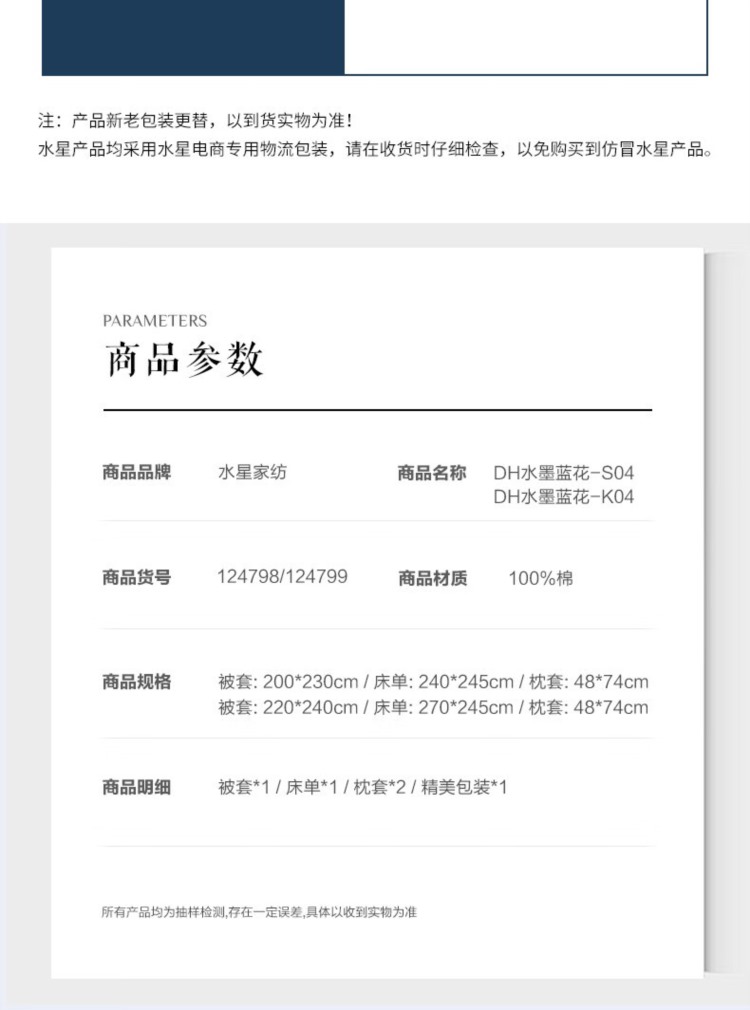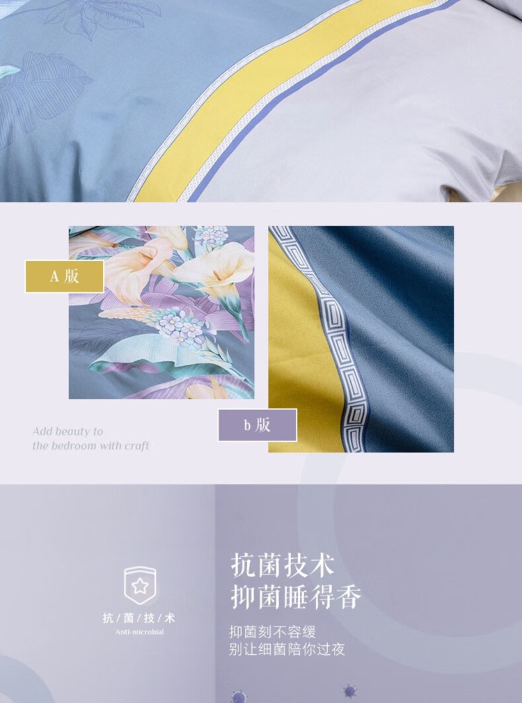 商品名称:【精选】水星家纺 DH宇希-S04 宇希长绒棉抗菌四件套 适用1.5米床 被套*1 床单*1 枕套*2 (计价单位:套) 印花