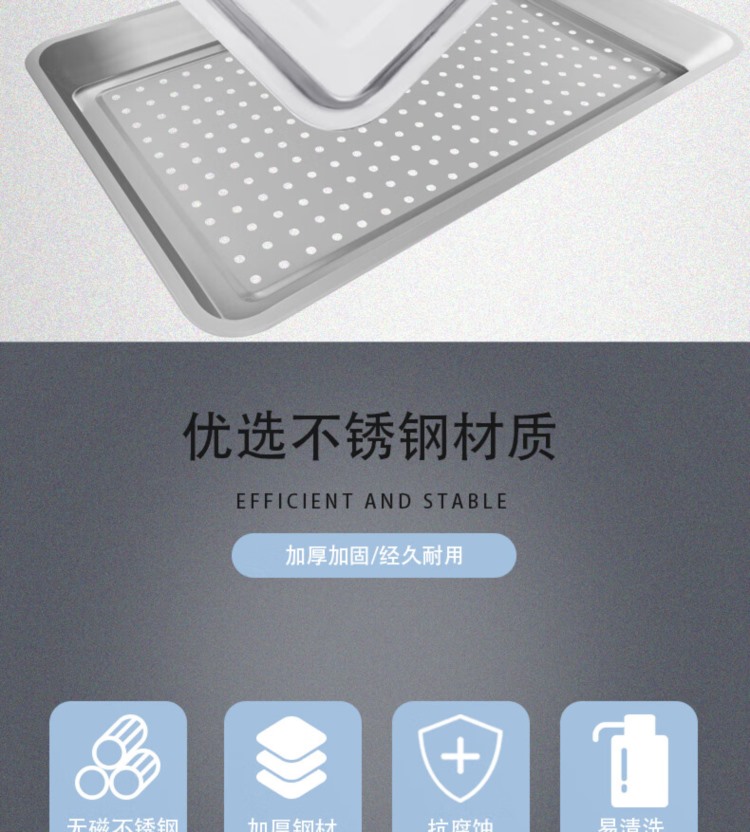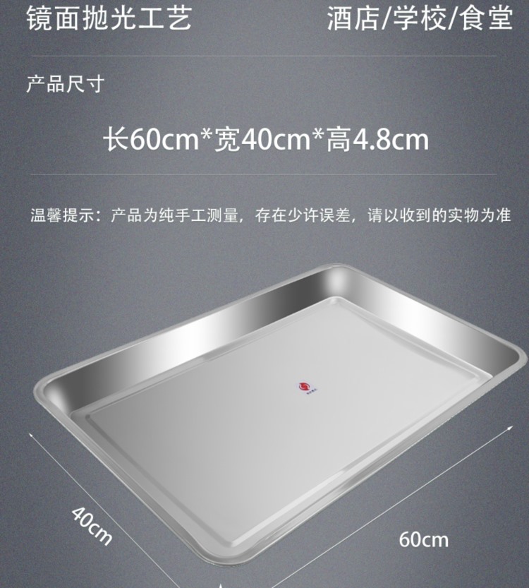 商品名称:【精选】四时烟火 不锈钢平底方盆 冲孔蒸包盆 长60cm*宽40cm*高4.8cm (计价单位:个) 银色