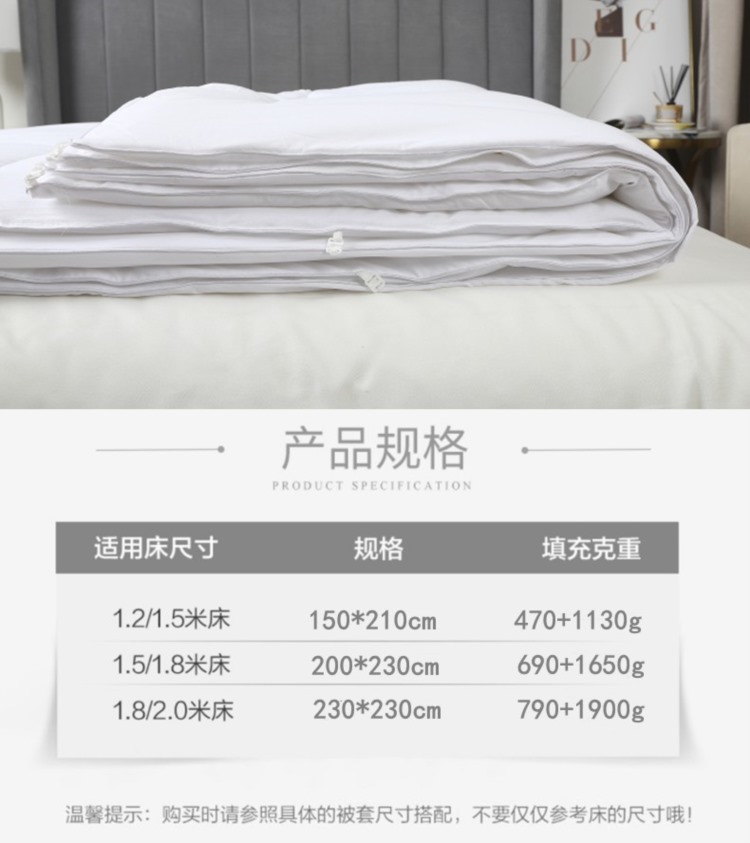 商品名称:【精选】顾柔 全棉防雨布面料子母被 1.2米/1.5米床 单人被 150*210cm (计价单位:套) 白色