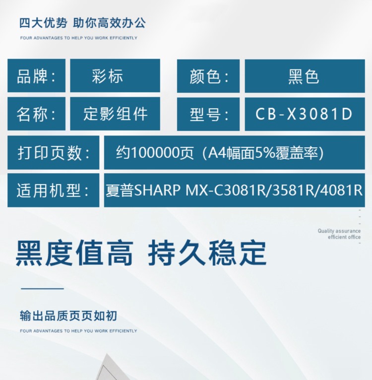 商品名称:【精选】彩标 定影组件 CB-X3081D 约100000页 适用夏普MX-C3081R/3581R/4081R