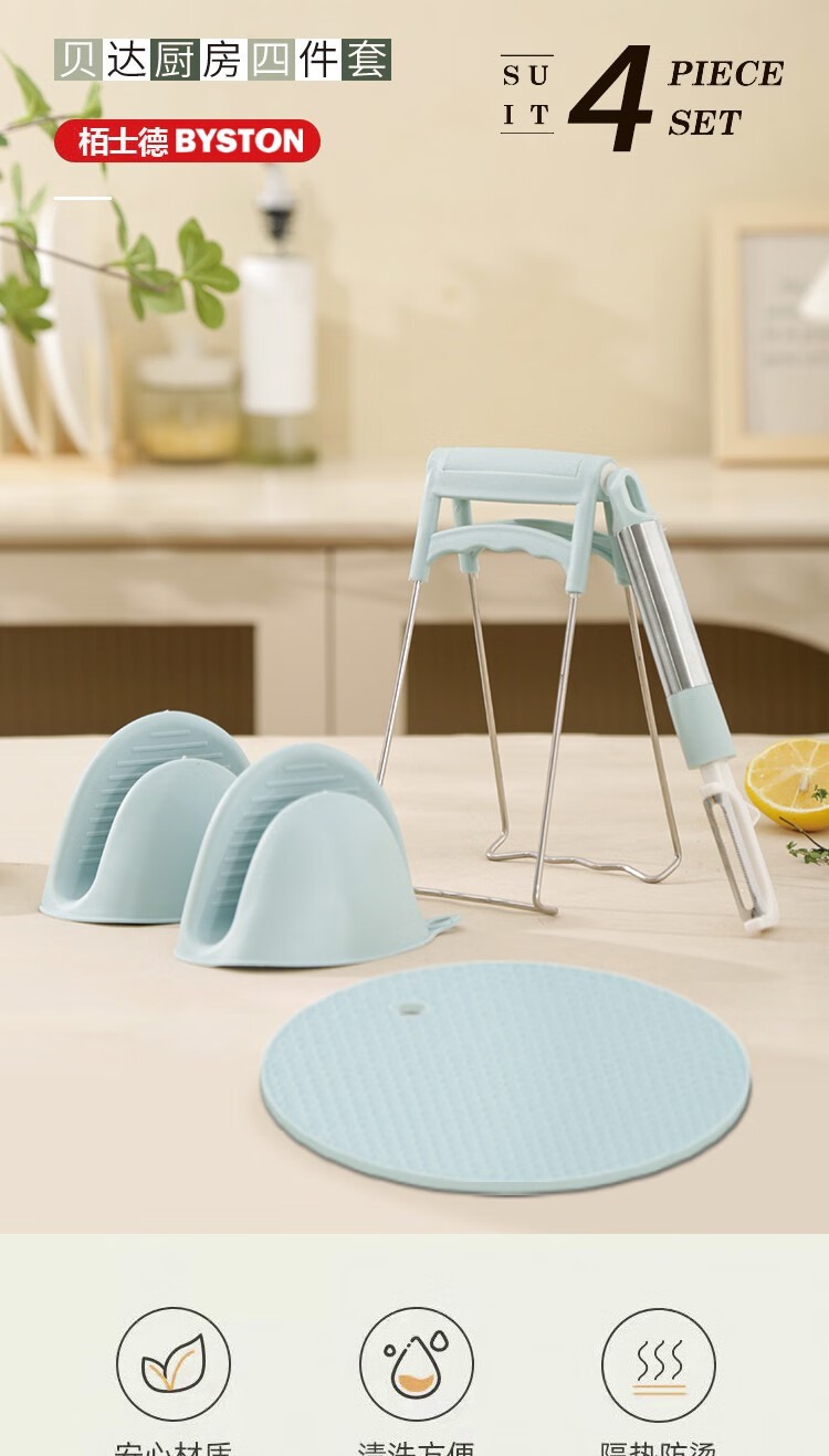 商品名称:【精选】栢士德 BST-135 贝达厨房四件套 硅胶手套+瓜果刨+防烫夹 (计价单位:套)