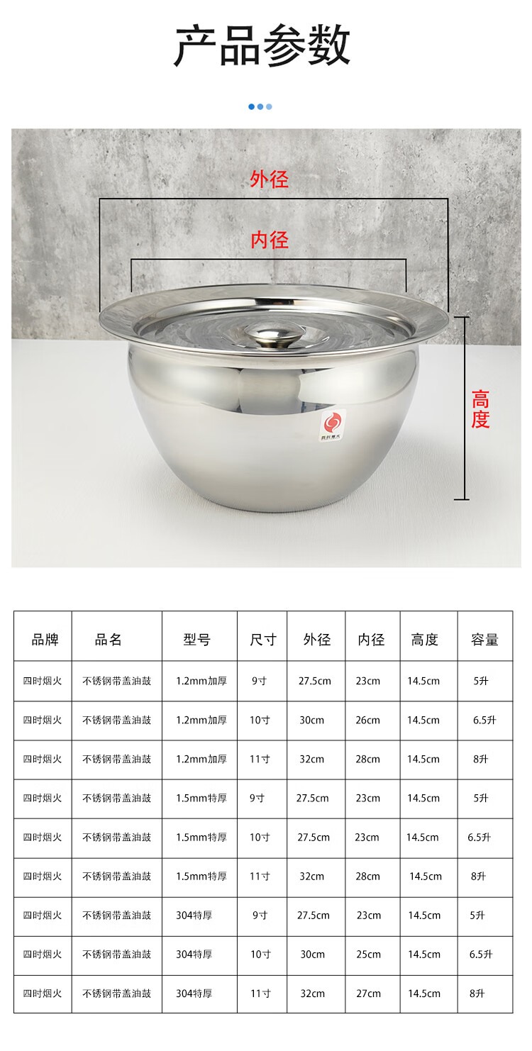 商品名称:【精选】四时烟火 不锈钢带盖油鼓1.2mm厚 10寸