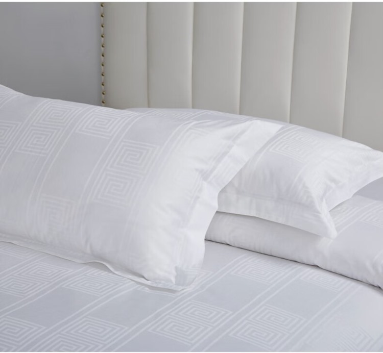 【精选】顾柔 回形格枕套 48*74cm 4个 (白色) 全棉提花面料