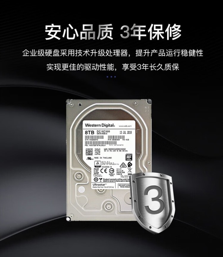 商品名称:【精选】海康威视 硬盘 WUH721818ALE6L4 西数18TB nas服务器存储 Sata机械氦气盘 CMR垂直(单位:个)