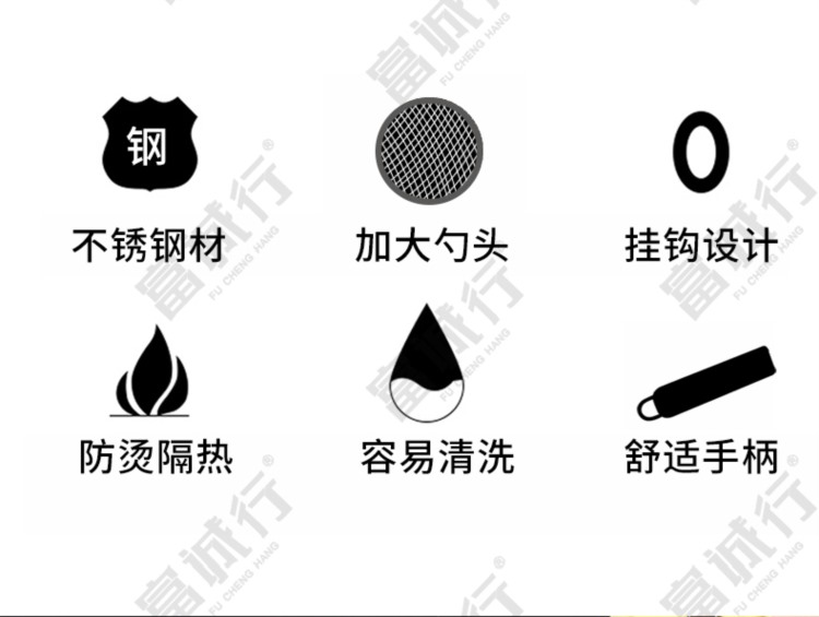 商品名称:【精选】富诚行(FCH)(GBHX) 不锈钢黑柄加厚过滤网筛 油炸网 家用面粉药渣油格 泡沫捞勺火锅漏勺 30cm