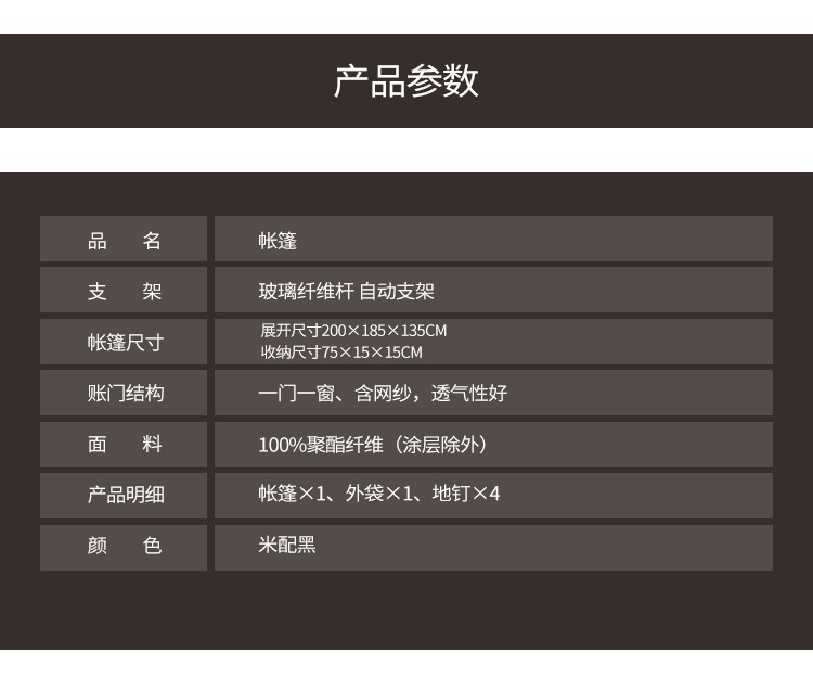 商品名称:【精选】Diplomat外交官 DFJ-112 帐篷户外用品野营加厚超轻便3-4人多用自动帐篷 200*185*135CM(单位:顶)