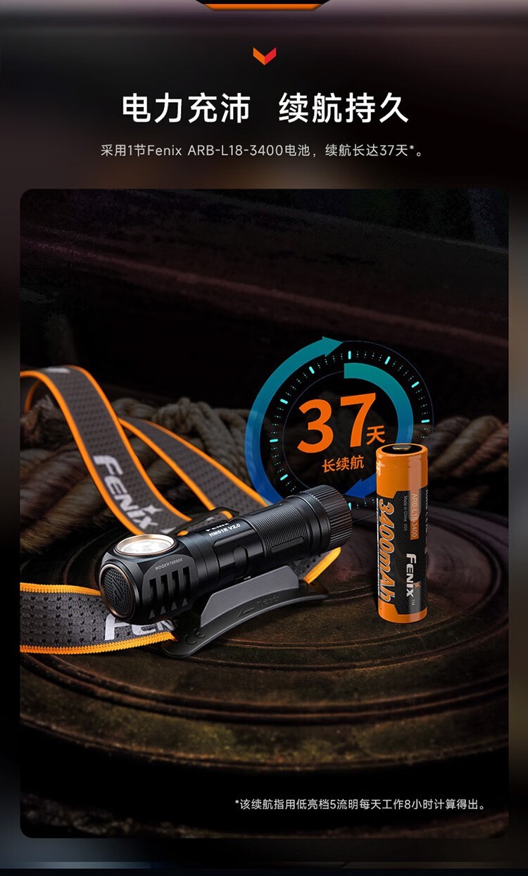 【精选】FENIX HM60R (GBQX ) 强光头灯 1200流明 标配2600mAh (单位:个)