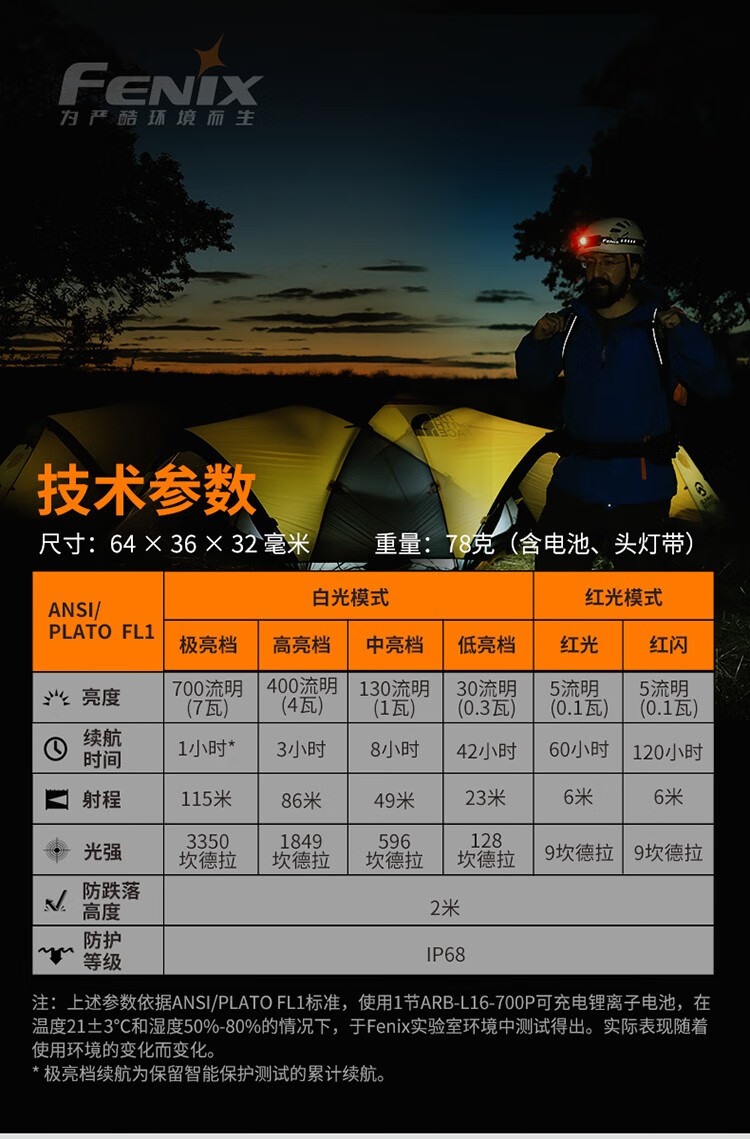 商品名称:【精选】FENIX HM60R (GBQX ) 强光头灯 1200流明 标配2600mAh (单位:个)