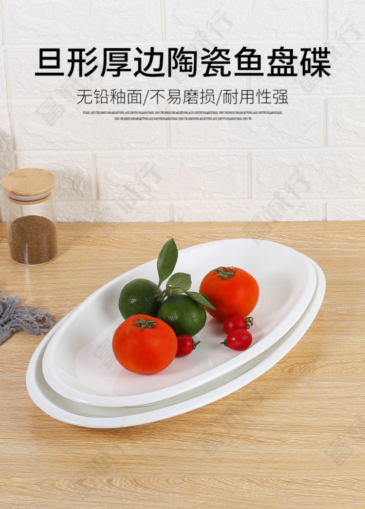 商品名称:【精选】富诚行 旦形厚边陶瓷鱼盘碟 16英寸 2个装 (计价单位:组) 白色
