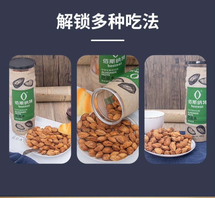商品名称:【精选】佰斯纳特(bestnut)(GBHX)巴旦木 美国进口杏仁大颗扁桃仁罐装坚果炒货特产小吃干果休闲零食团购 A罐-460g