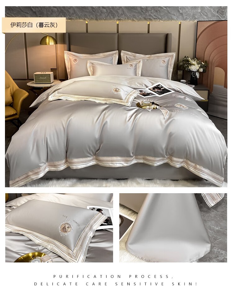 商品名称:【精选】伊伊爱TJ0HJC2101071伊丽莎白100S绣花四件套220*240cm古月咖(单位:套)