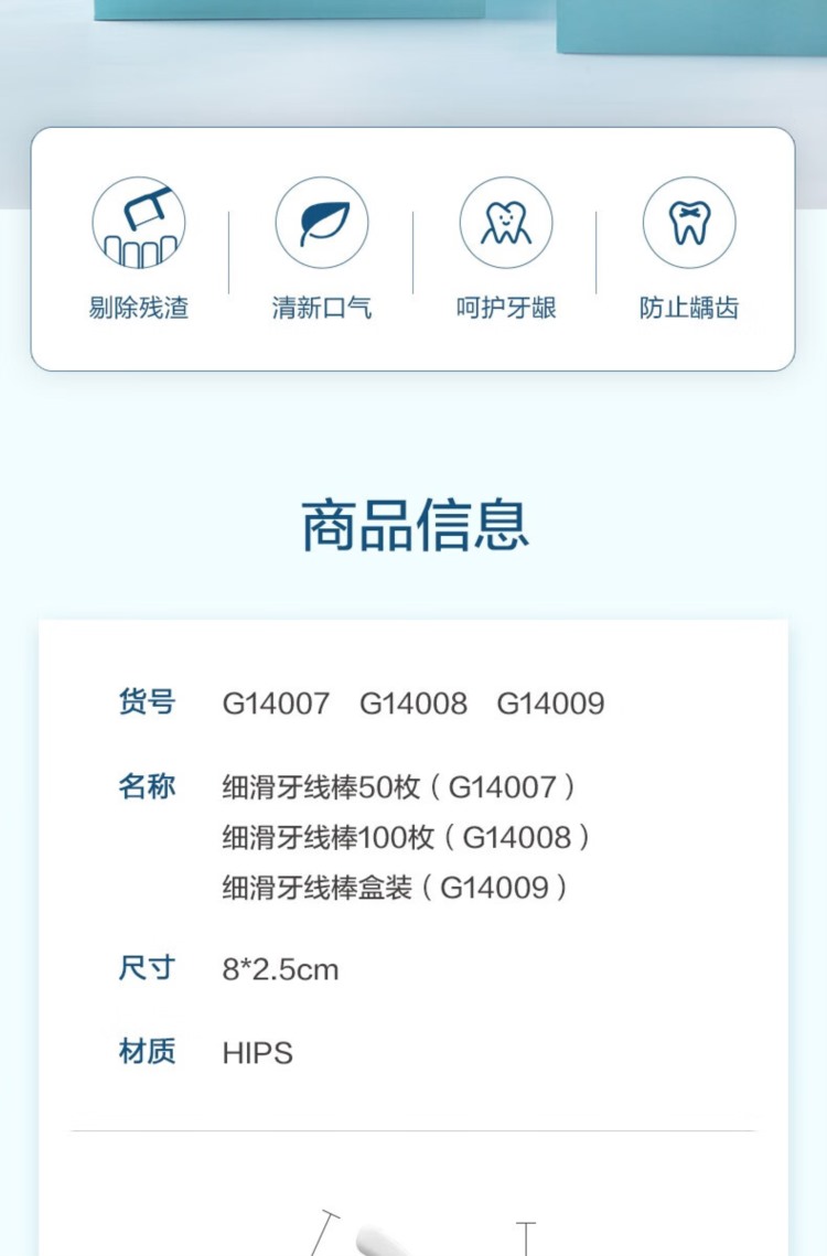 商品名称:【精选】茶花(GBHX)G14007 HIPS 8*2.5CM细滑牙线棒 50枚/袋 单位:袋
