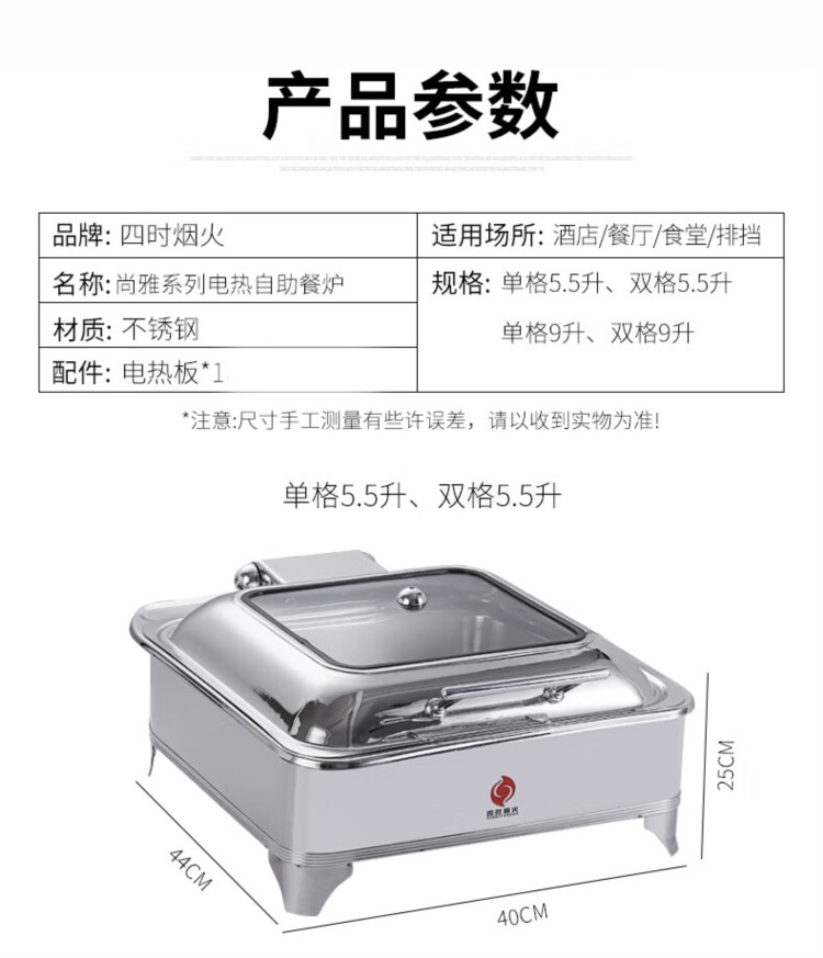 商品名称:【精选】四时烟火 尚雅系列电热自助餐炉 单格5.5升 (计价单位:台)