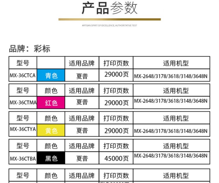 商品名称:【精选】彩标 MX-36CT系列 高容碳粉墨粉盒 MX-36CTCA 适用MX-2648/3118/3618/3148/3648NC机型