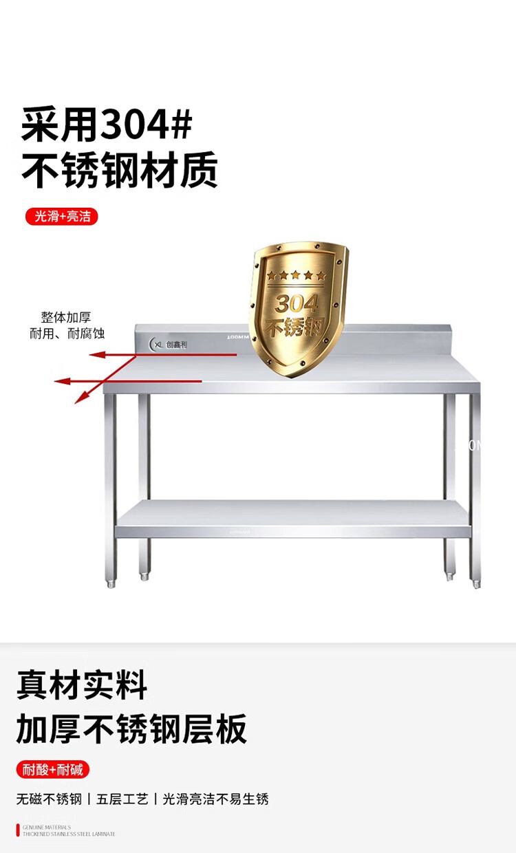 【精选】创鑫利双层工作台 HY-SCGZT1500 1500*760*800+150mm 不锈钢 (计价单位:张)