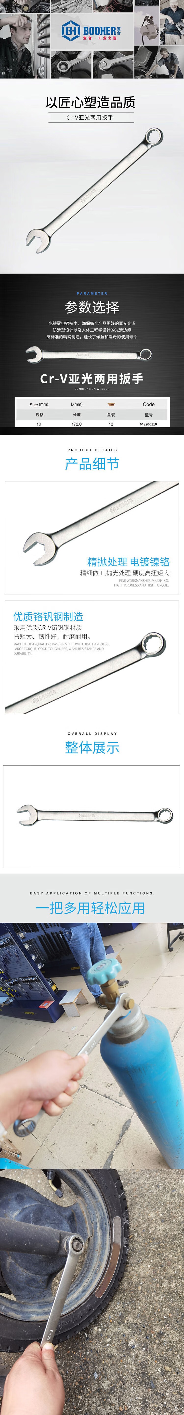 商品名称:【精选】宝合 643200110 Cr-V亚光两用扳手 10mm (计价单位:把)