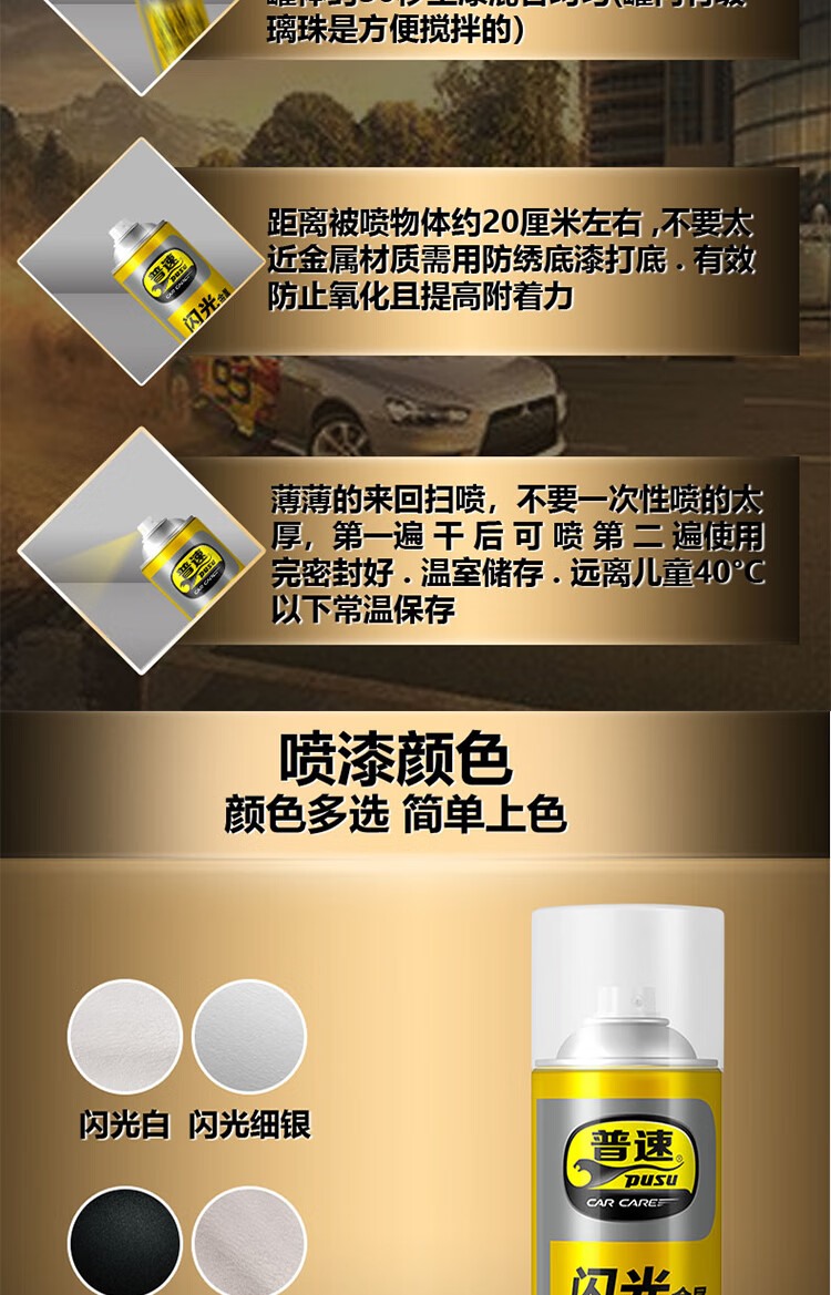 商品名称:【精选】普速PUSU 闪光金属自喷修补漆 PUSU7196闪光白 400ml 12瓶/箱(单位:箱)