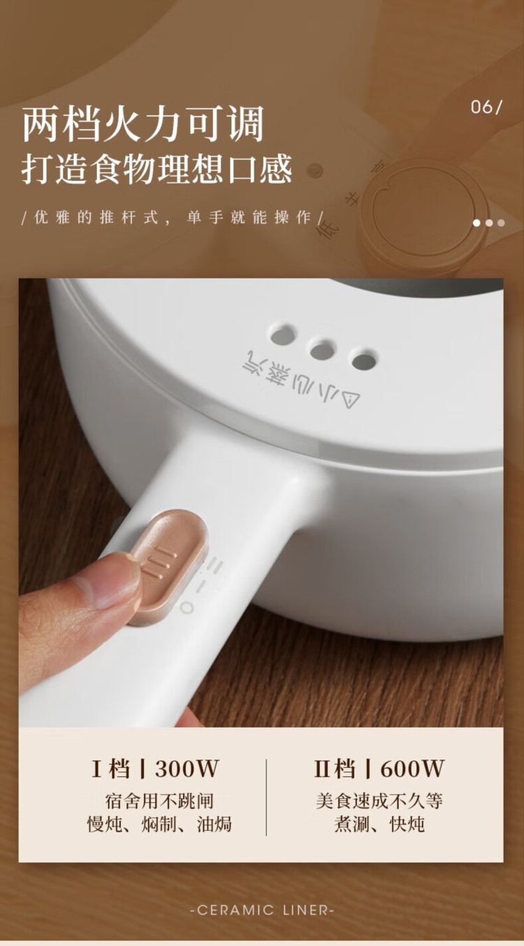 商品名称:【精选】小熊 DRG-E15F2 201材质锅身喷铁氟龙、打标无304字带食品级、带蒸茏电热锅 1.6L (计价单位:台) 米白色
